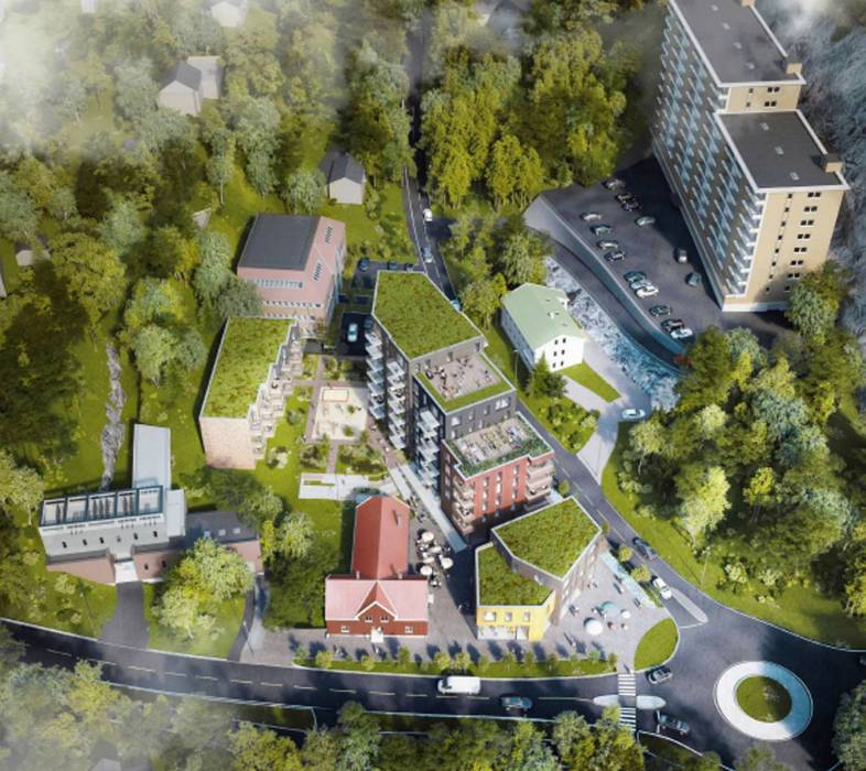 Mot Skytterdalen trappes bebyggelsen gradvis opp til åtte etasjer. Byggene inne i gårdsrommet er på fire etasjer. Et viktig mål for de nye boligene er at de tilrettelegges for yngre førstegangsetablerere under 35 år.